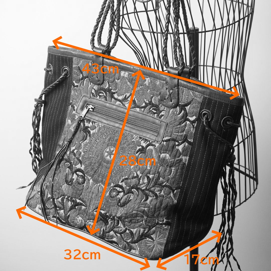 サイズ:幅約32cm、高さ約28cm、マチ約17cm、バッグ口約43cm