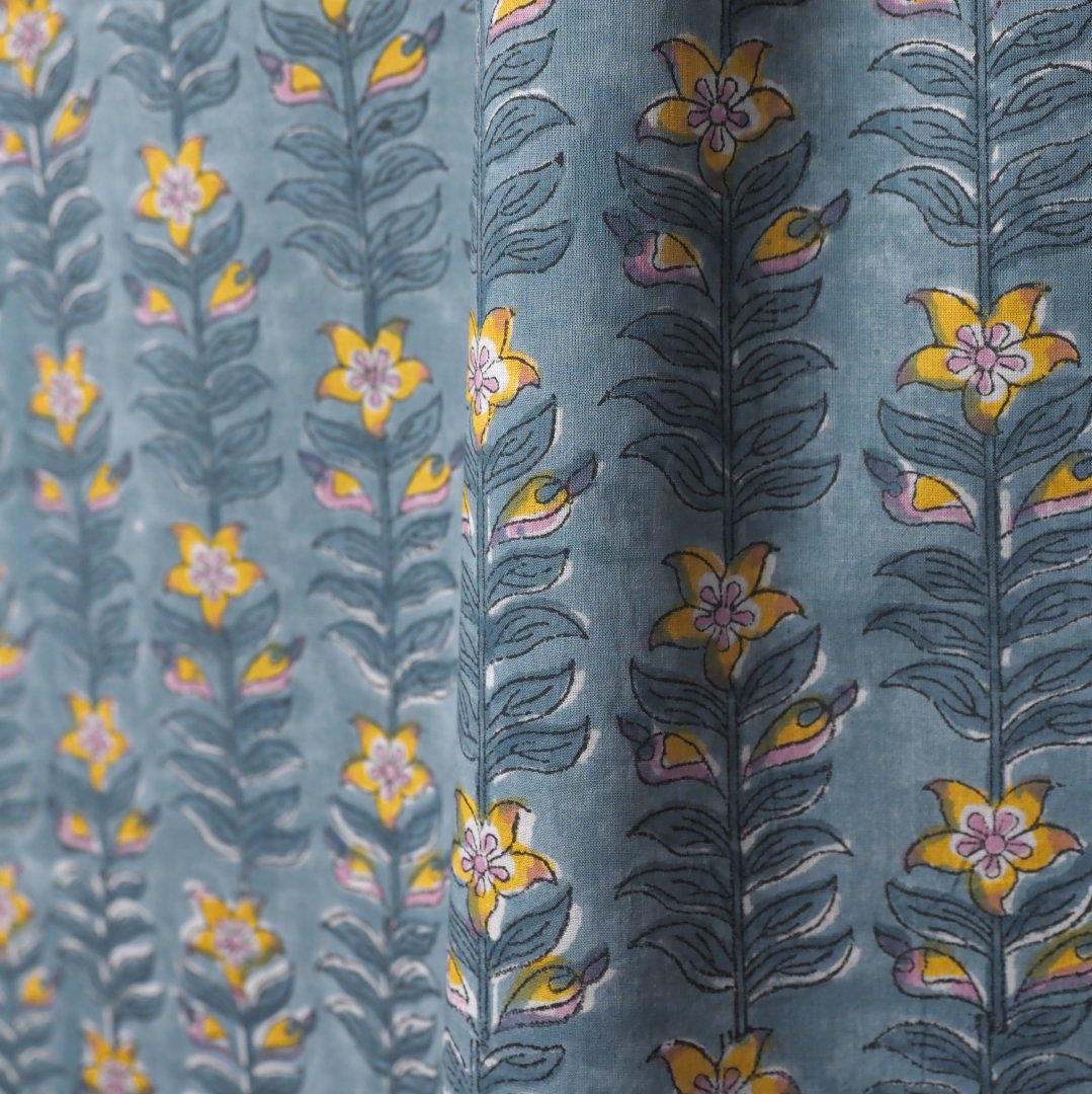 インド、ラジャスタン州サンガネールに古くから伝わる伝統的な木版染めでつくられた生地です。