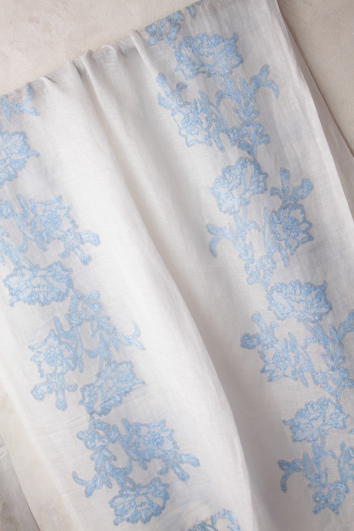 織物王国インドならではの刺繍入りリネンストール。 リネン(亜麻)素材の良さはシワになっても素敵な風合いをかもし出すところ!