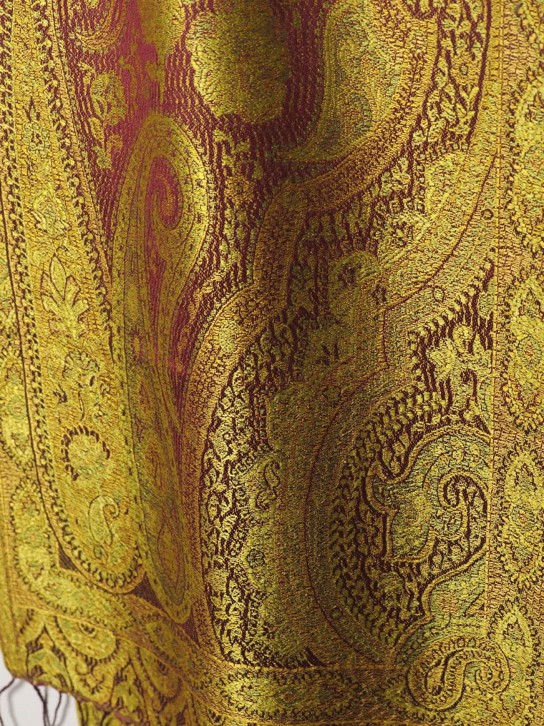 可憐な花模様やノスタルジックなペーズリーをインドならではのテクニカルな織りで表現。