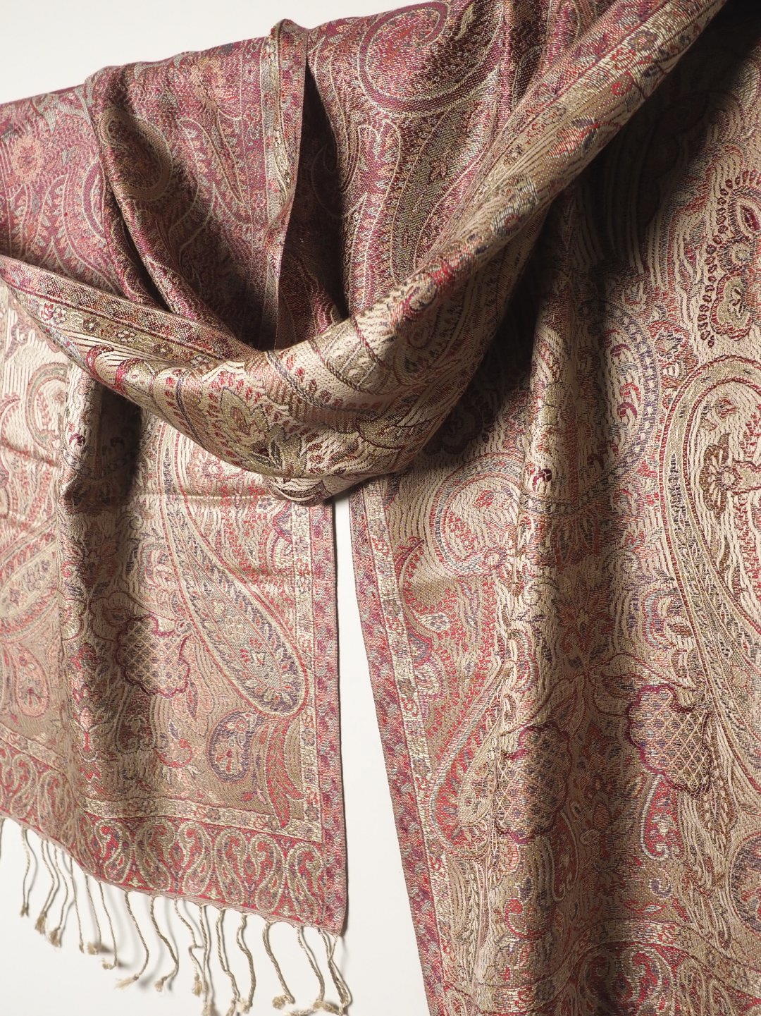インドの大地を身近に感じられるストール。 シルクの艶としなやかさがエレガントな大人の印象を高めてくれます♪