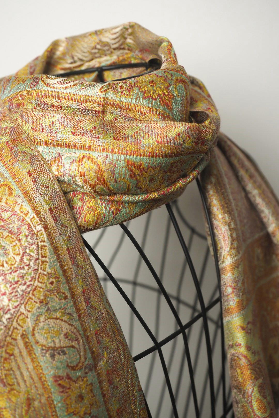 オリエンタルな香りを醸すペーズリー柄をメインに展開するジャカード織りのストール群。