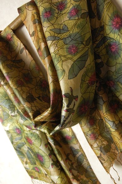 一枚一枚手作業によるスクリーンプリントで染色されており、微妙な柄のズレ具合や、