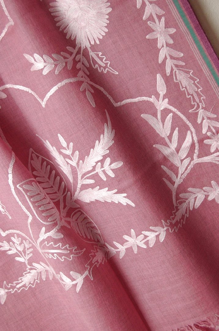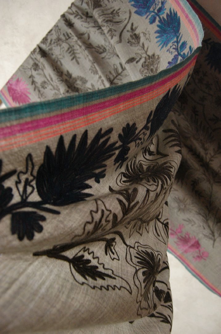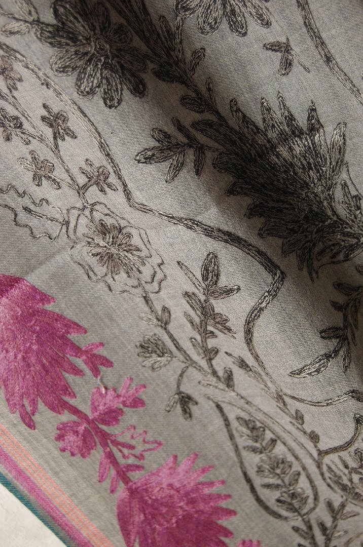 やわらかな肌触りの、上質のウールを贅沢に使用。 ストール全体に施された、細やかなステッチによる刺繍がポイント♪