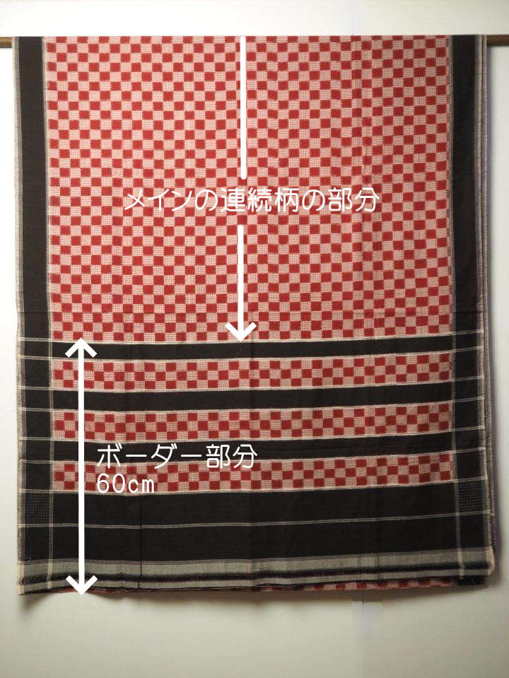 このサリーの場合は片側にボーダー部分がついています。これ以外の部分がメインの連続柄の部分です。